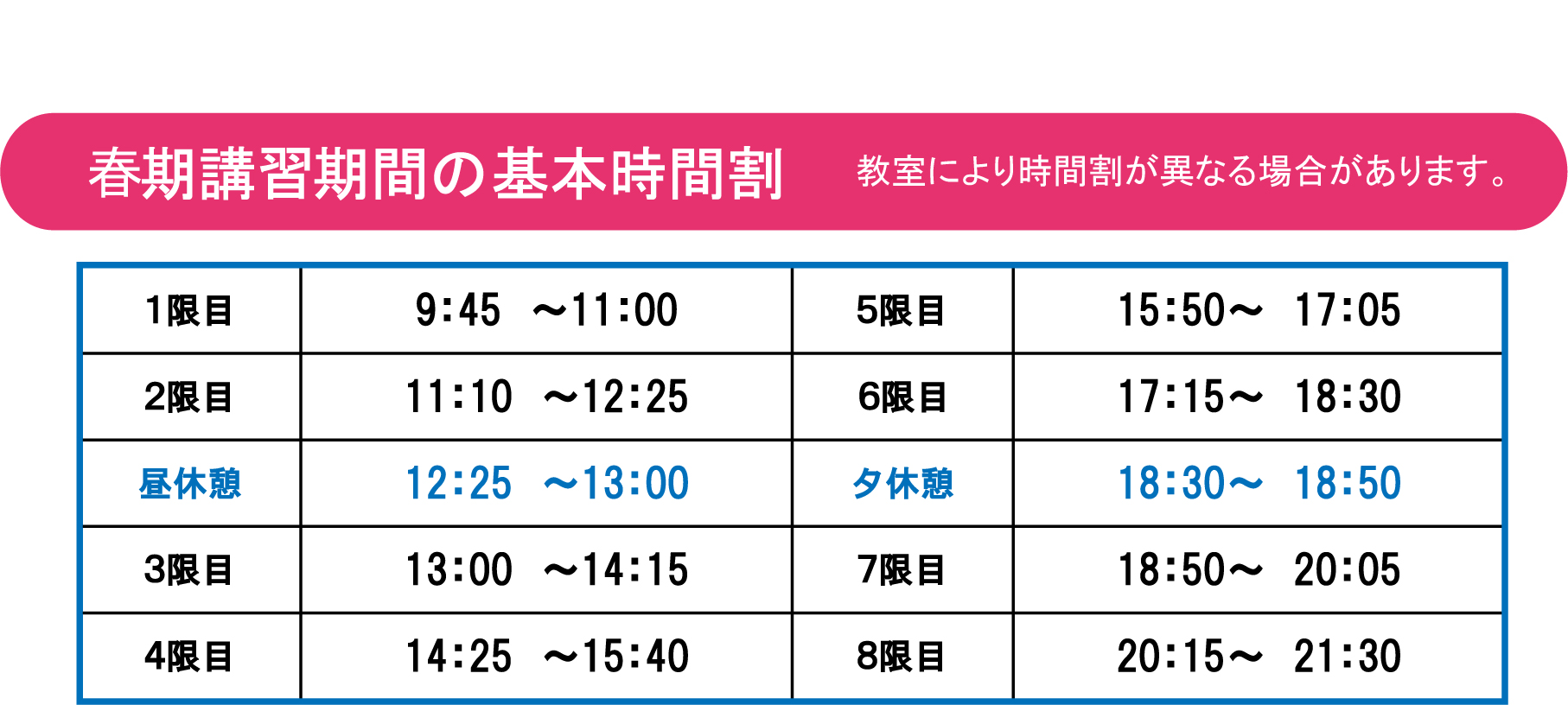 ◆教室により、開講時限が異なる場合がございます。お問い合わせ時にご確認ください。