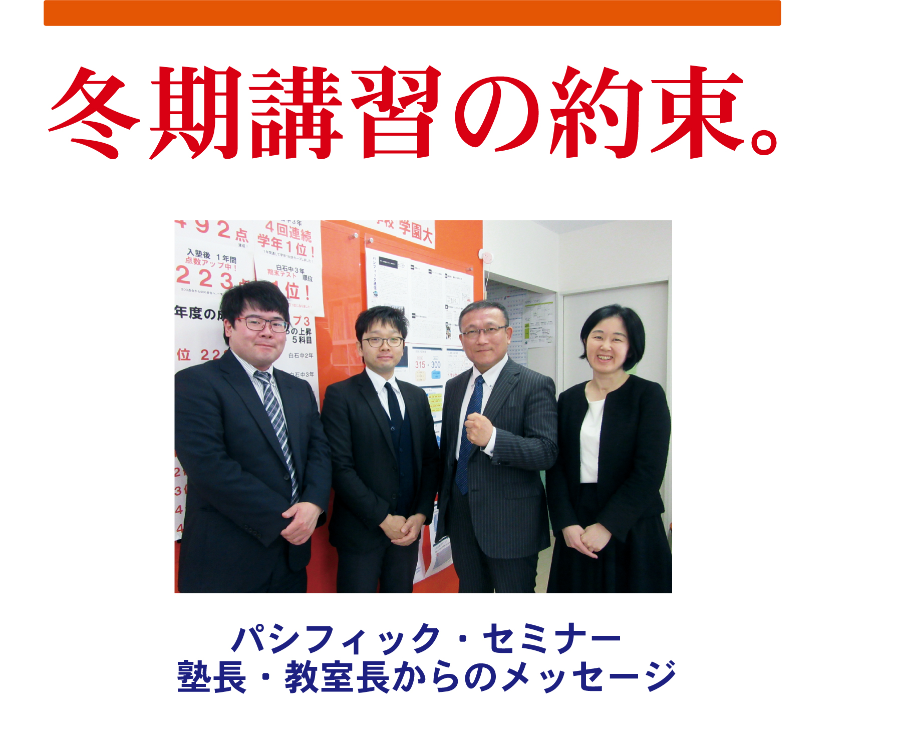 パシフィック・セミナーの冬期講習は、生活にメリハリをつけ、勉強に集中できる最適な環境を用意しています。
